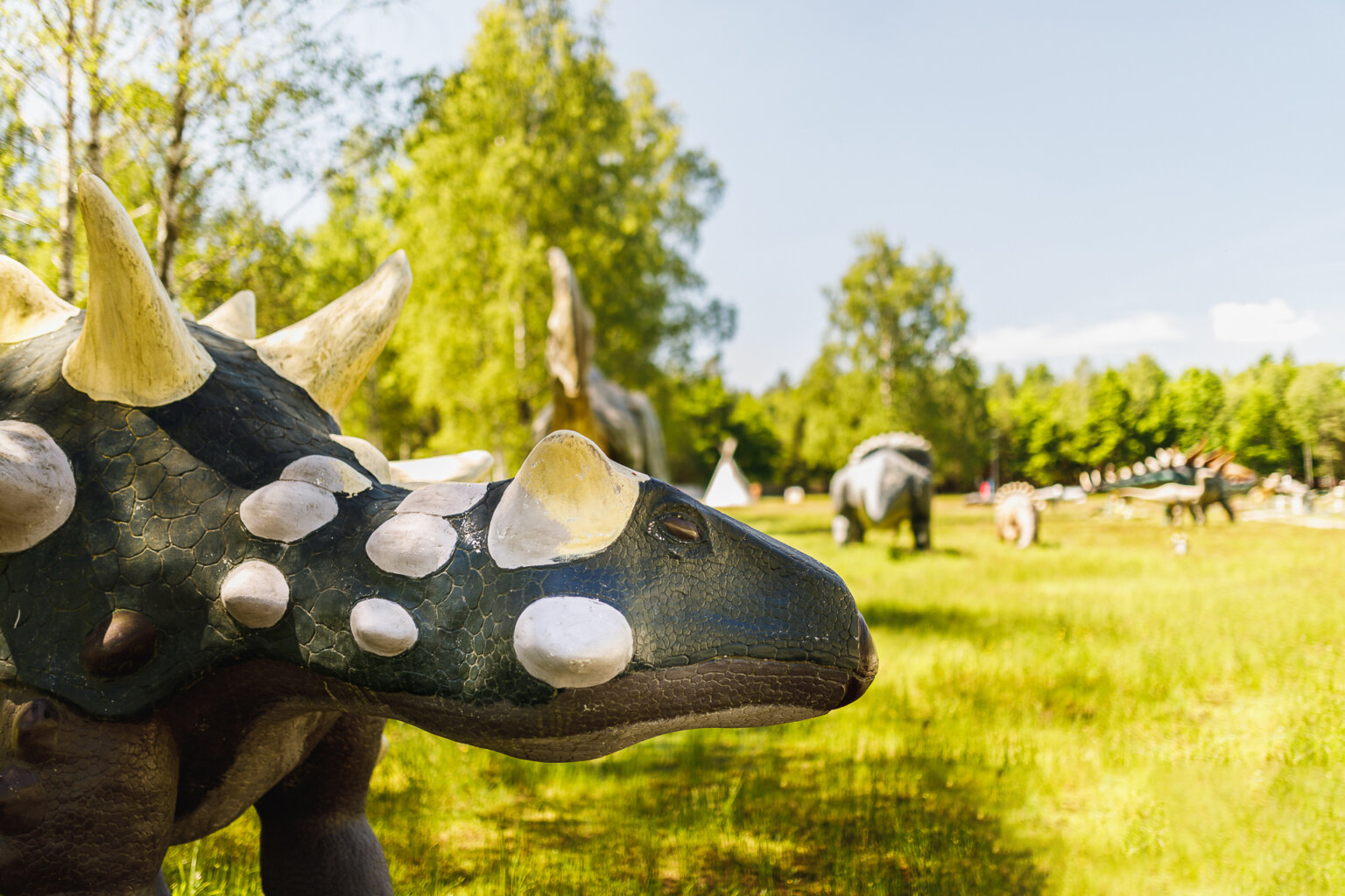 W naszym parku mamy już ponad 40 modeli dinozaurów. Z bliska możesz zobaczyć jak wyglądały prehistoryczne gady. Niektóre nawet ryczą, kiedy się do nich zbliżysz. Pamiętaj, aby nie dotykać i nie siadać na eksponatach bo to im się bardzo nie podoba i jest surowo zabronione.