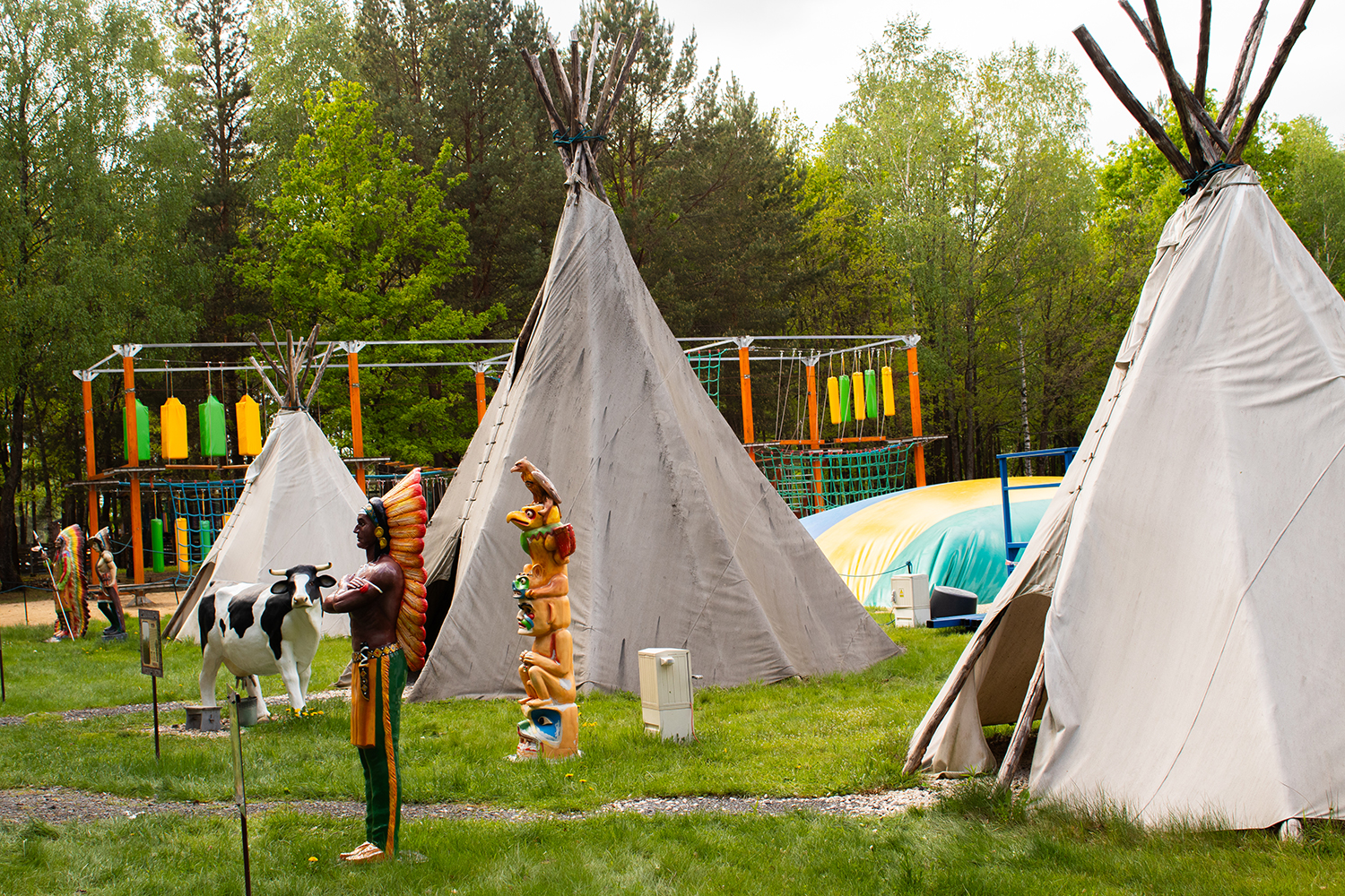 Poczuj się jak prawdziwy indianin! Bądź Apaczem lub Komańczem! Postrzelaj z łuków. To świetna zabawa dla mniejszych i tych starszych. Pamiętaj, aby nie kierować strzał w stronę zwierząt i ludzi. Po skończonej zabawie uporządkuj łuki i strzały, by mogli z nich skorzystać inni. Przy okazji odwiedź wioskę Indian. Załóż pióropusz, zrób super fotkę i wejdź do tipi, by poczuć się jak prawdziwy Indianin.